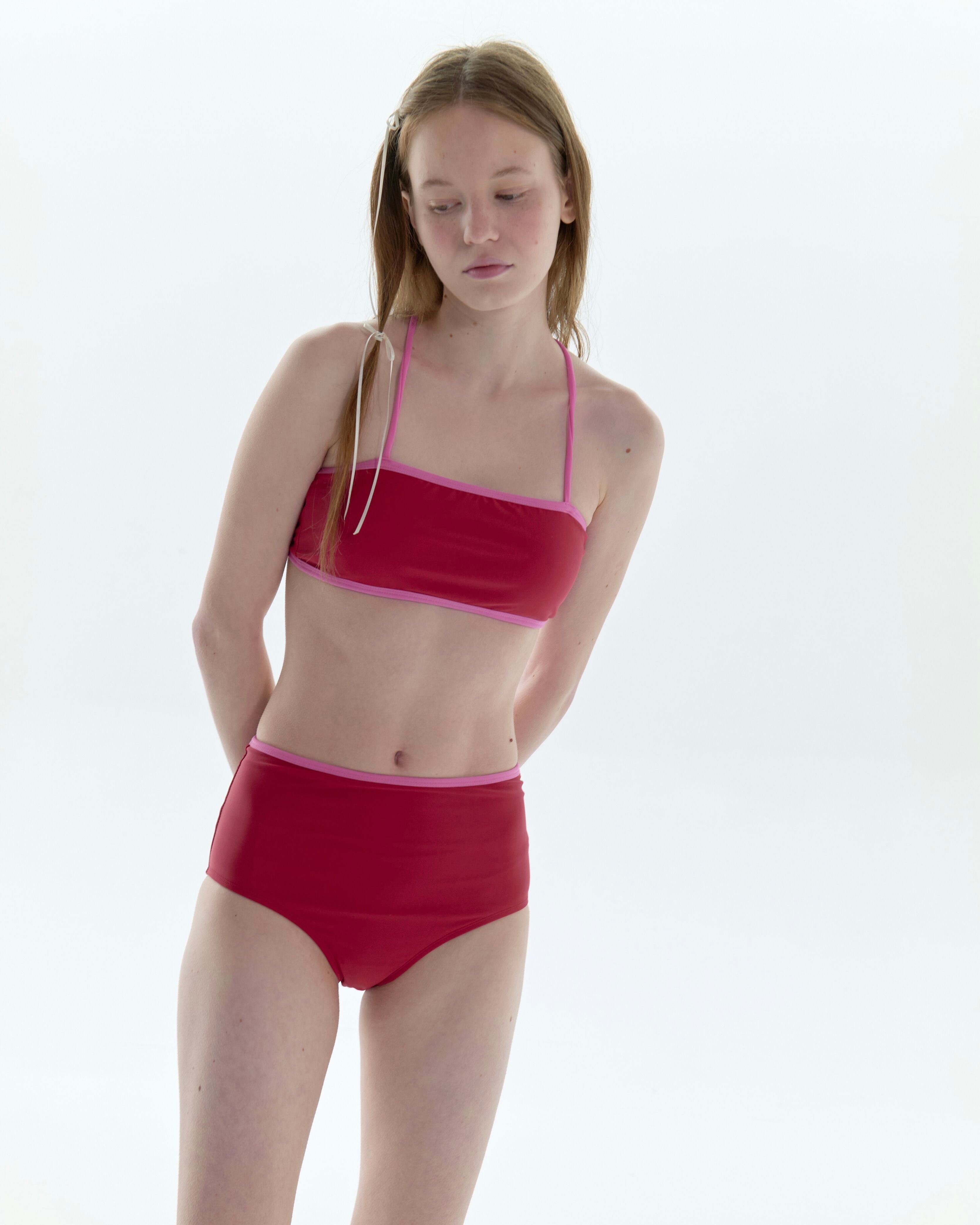 PISCESS/SOLID BANDEAU BIKINI(RED × S)
