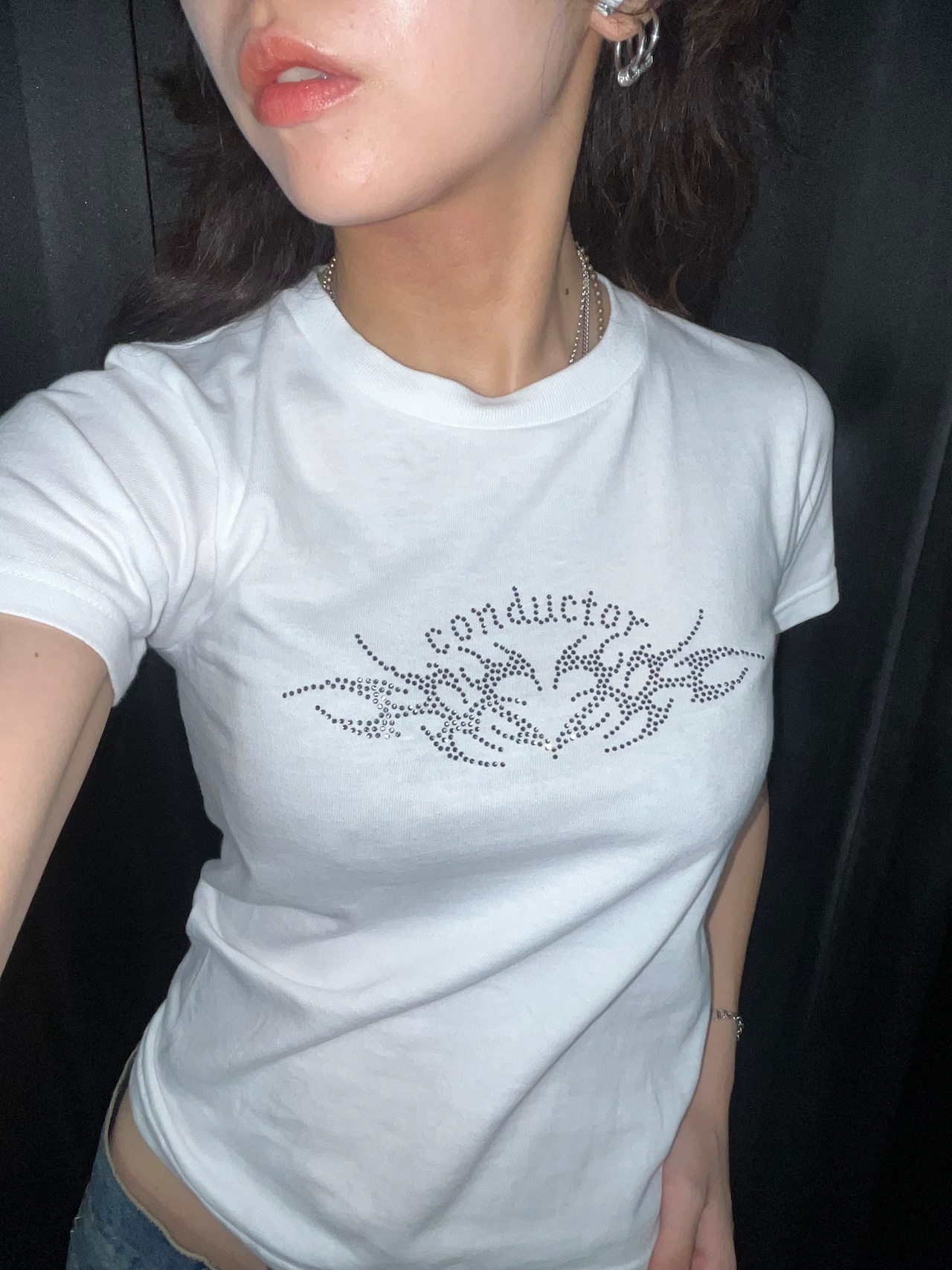el conductorH/STONE DECORATED HEART TRIBAL MINI T-SHIRT