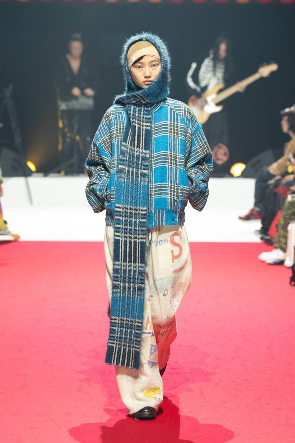 SEVESKIG/Lustre Check Knit Long Scarf Hoodie