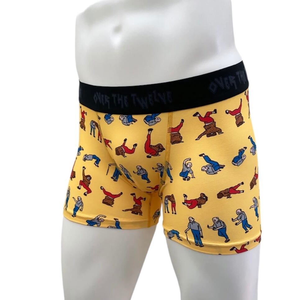 爺さんと婆さんがブレイクダンスするこの柄は、生涯現役がテーマ。