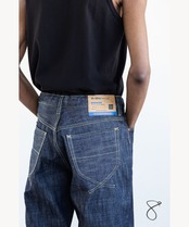 リジットデニム生地のパンツ。