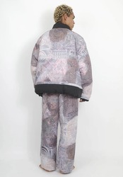 フロント前開きファスナー、イギリス人アーティストキム・ロートンによるグラフィック総柄裏地。