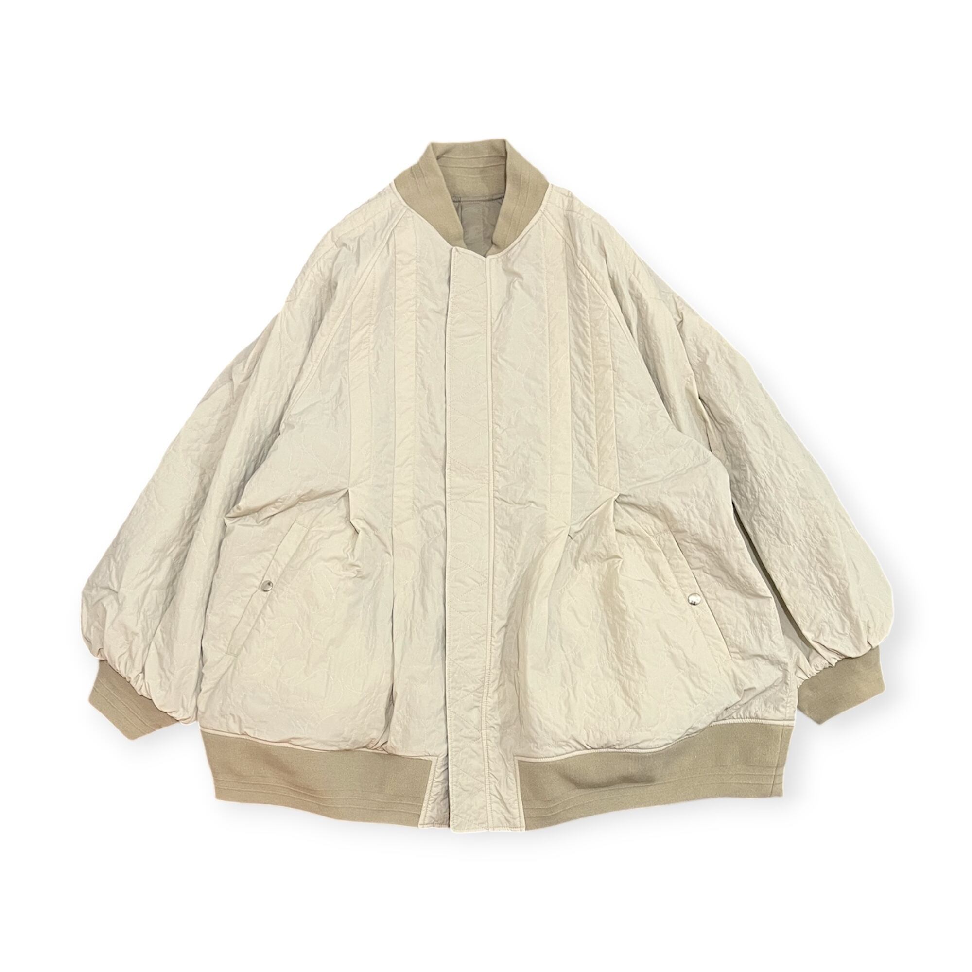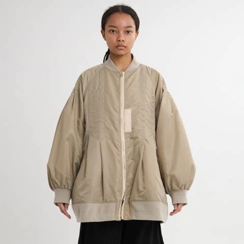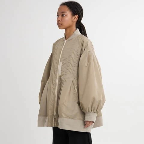 MEGMIURAのベストセラー、MA-01。今シーズンは、ミリタリーからのインスピレーションを受け、表にナイロンサテン素材、裏側にオリジナルのLeaf柄ステッチがほどこし、中綿は薄手機能綿である、サーモライトを使用。秋から春真冬にかけて活躍するジャケットにアップデートしました。ポケット部分はシグネチャーとも言えるオリジナル刺繍ポケット。装飾と機能性を兼ね備えています。