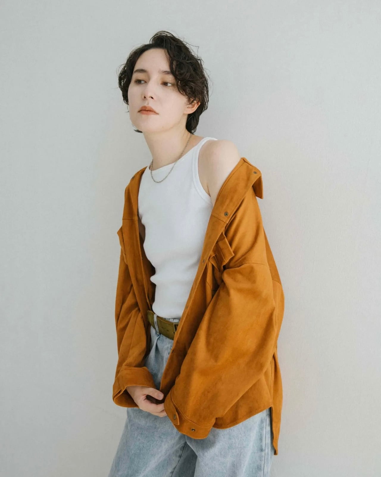 スエード素材のなめらかな肌触りと軽やかな着心地が魅力の「SUEDE VINTAGE SHIRTS JK」。