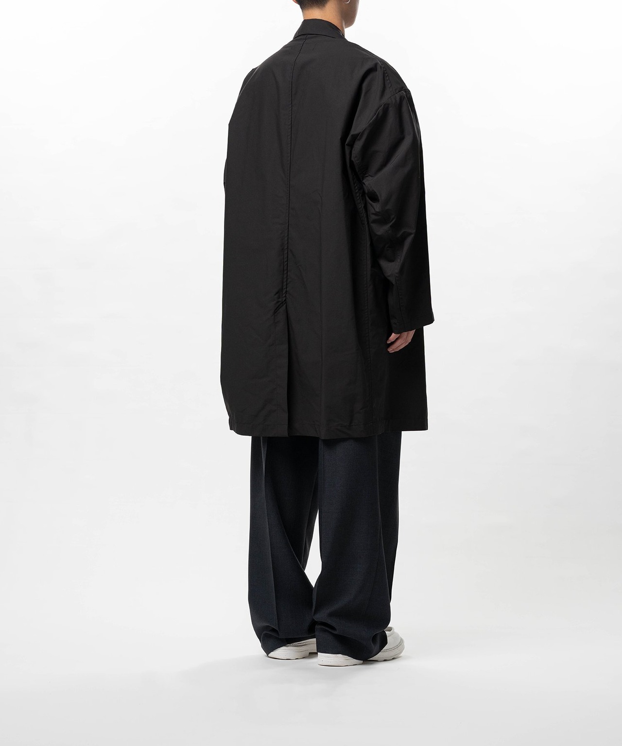 撥水性を備えたバックツイル素材を使用したコート。