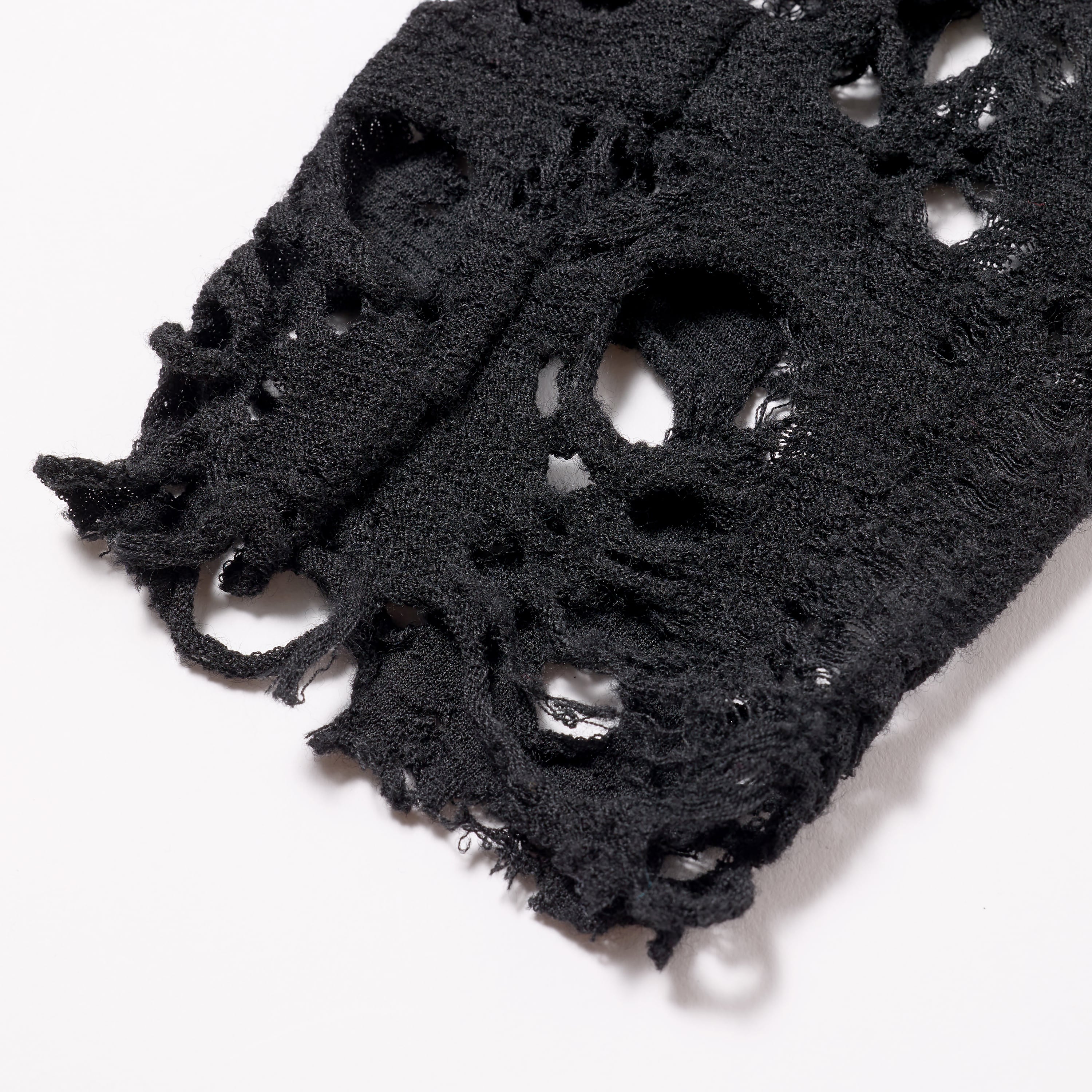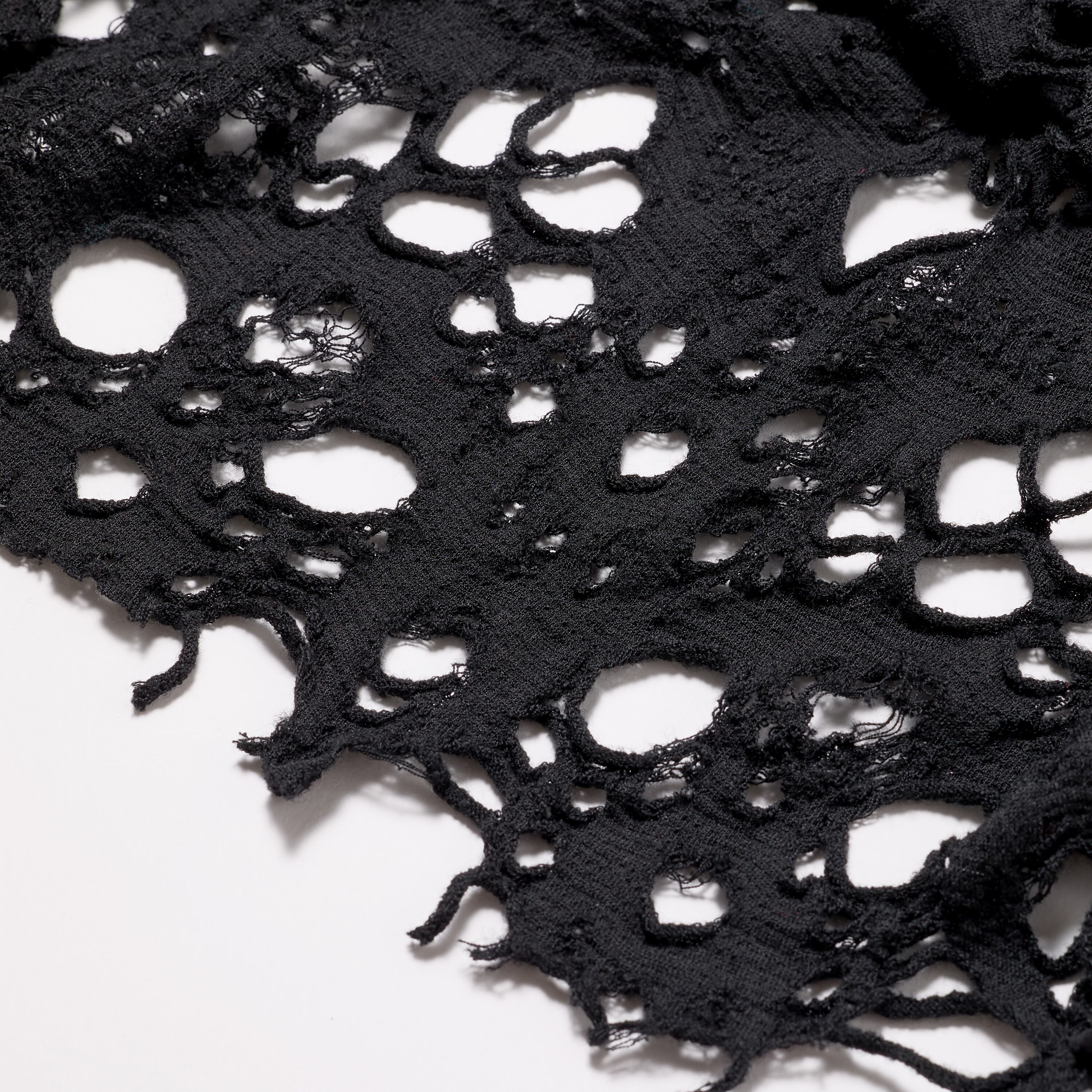 ウール素材の糸と溶ける糸で編み上げた素材のウールのみを柄として残した素材のトップス。