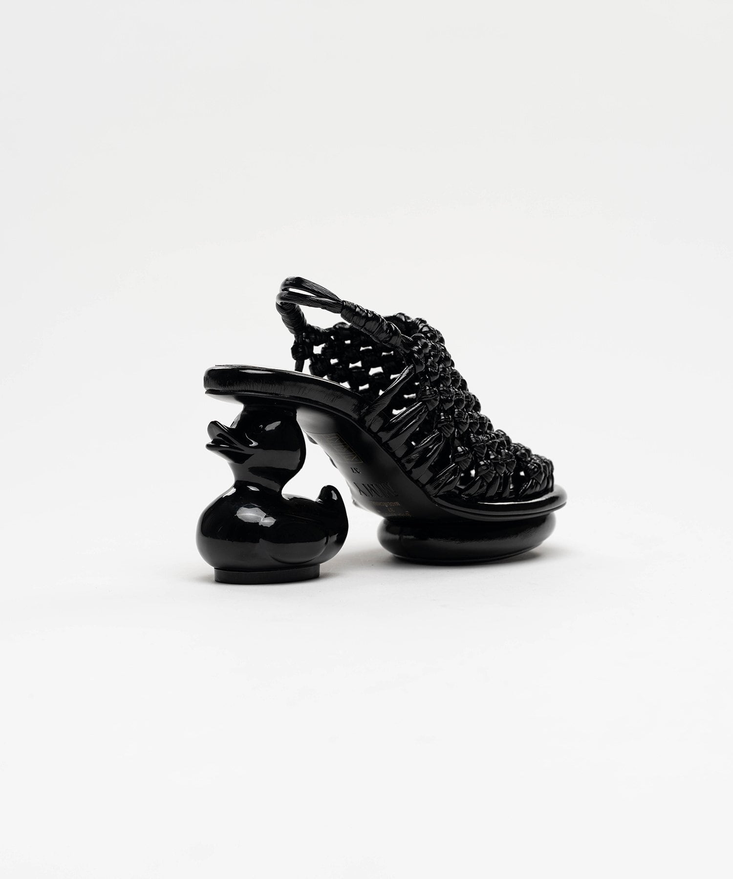ヒール部分がアヒルの形をした、サンダル。