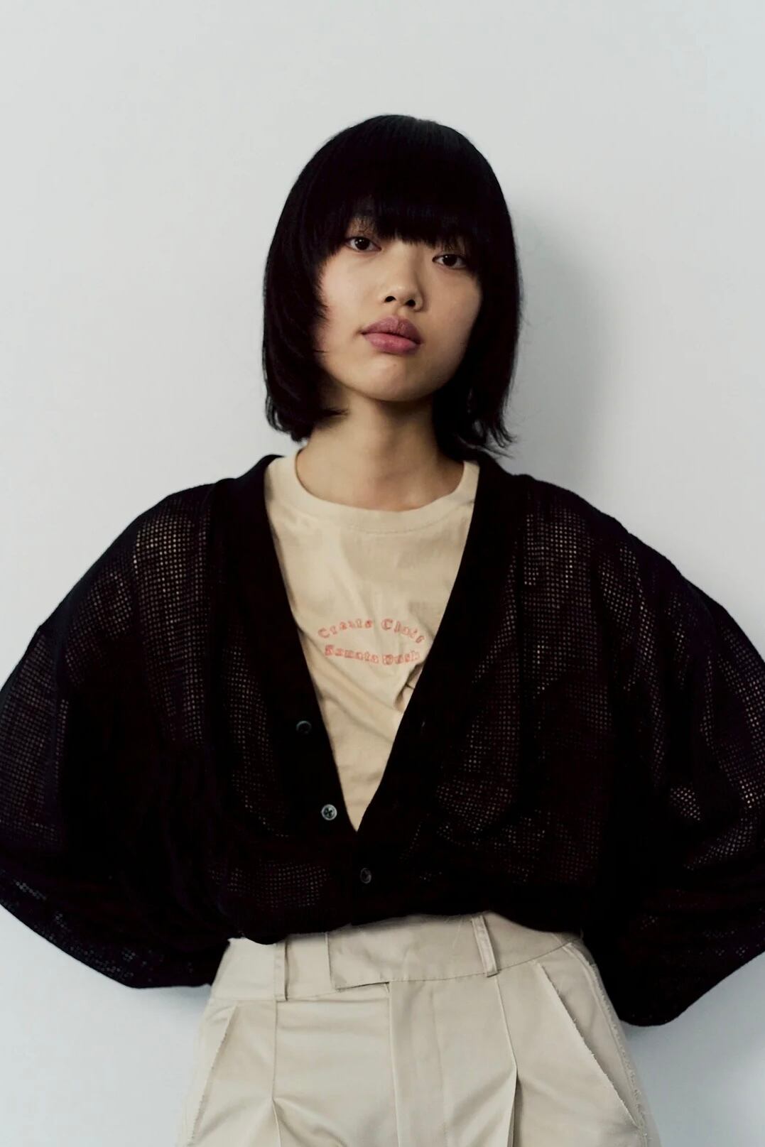 Create Clair/Basket mesh cardigan(BLACK × F)