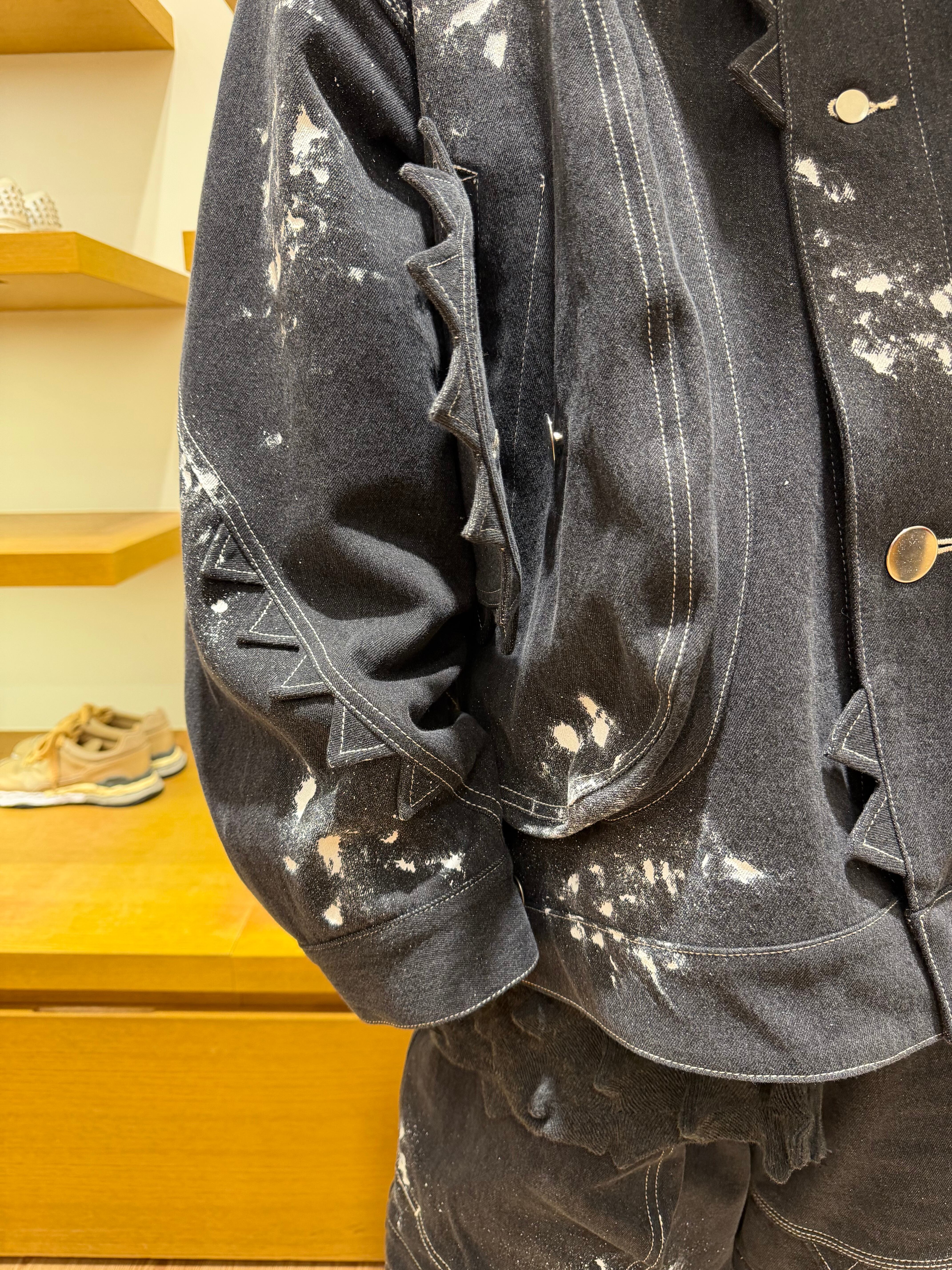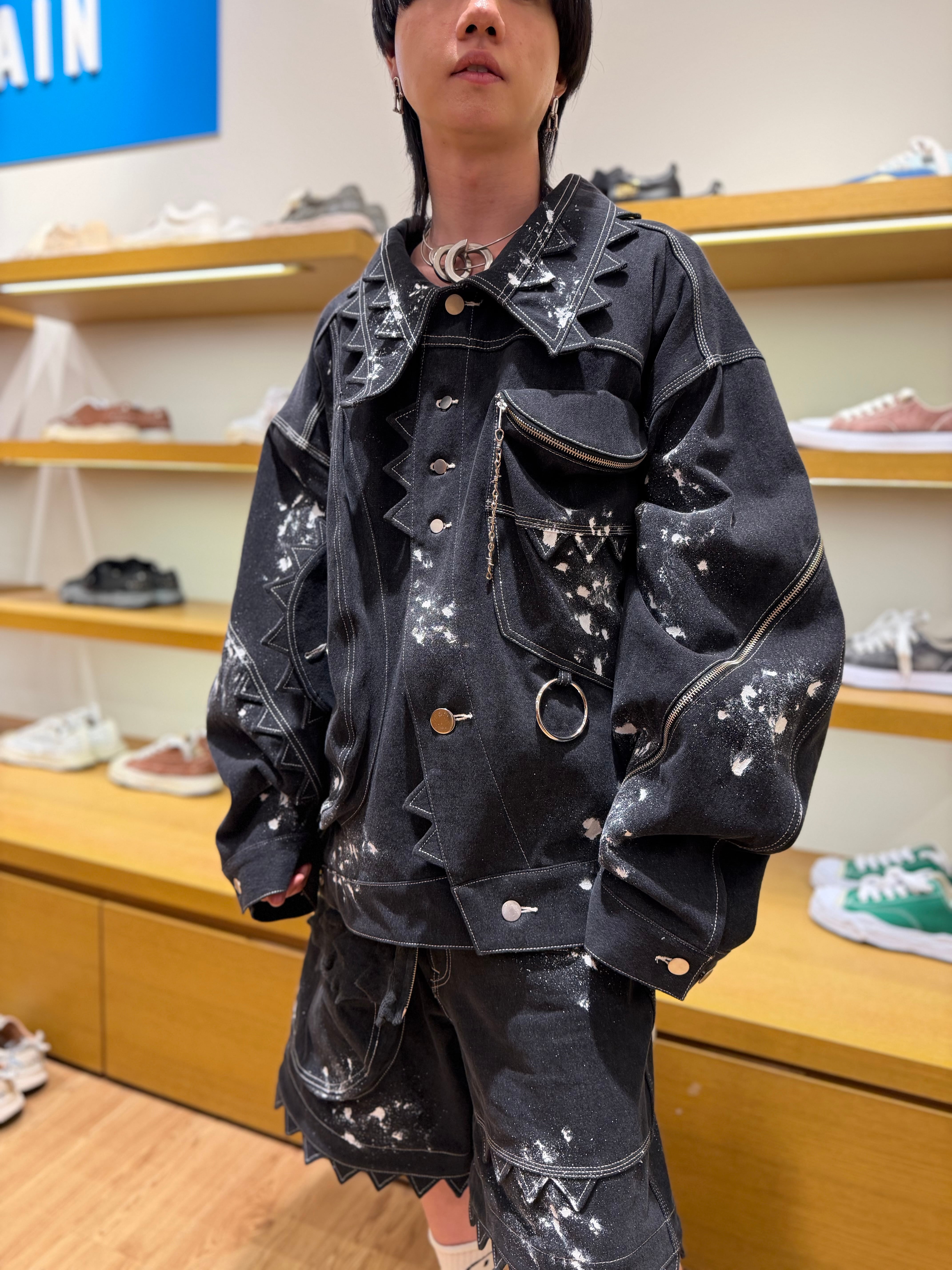 KIDILL/MONSTER DENIM JACKET BIOSTONE WASHED STAIN DISTRESSED DENIM