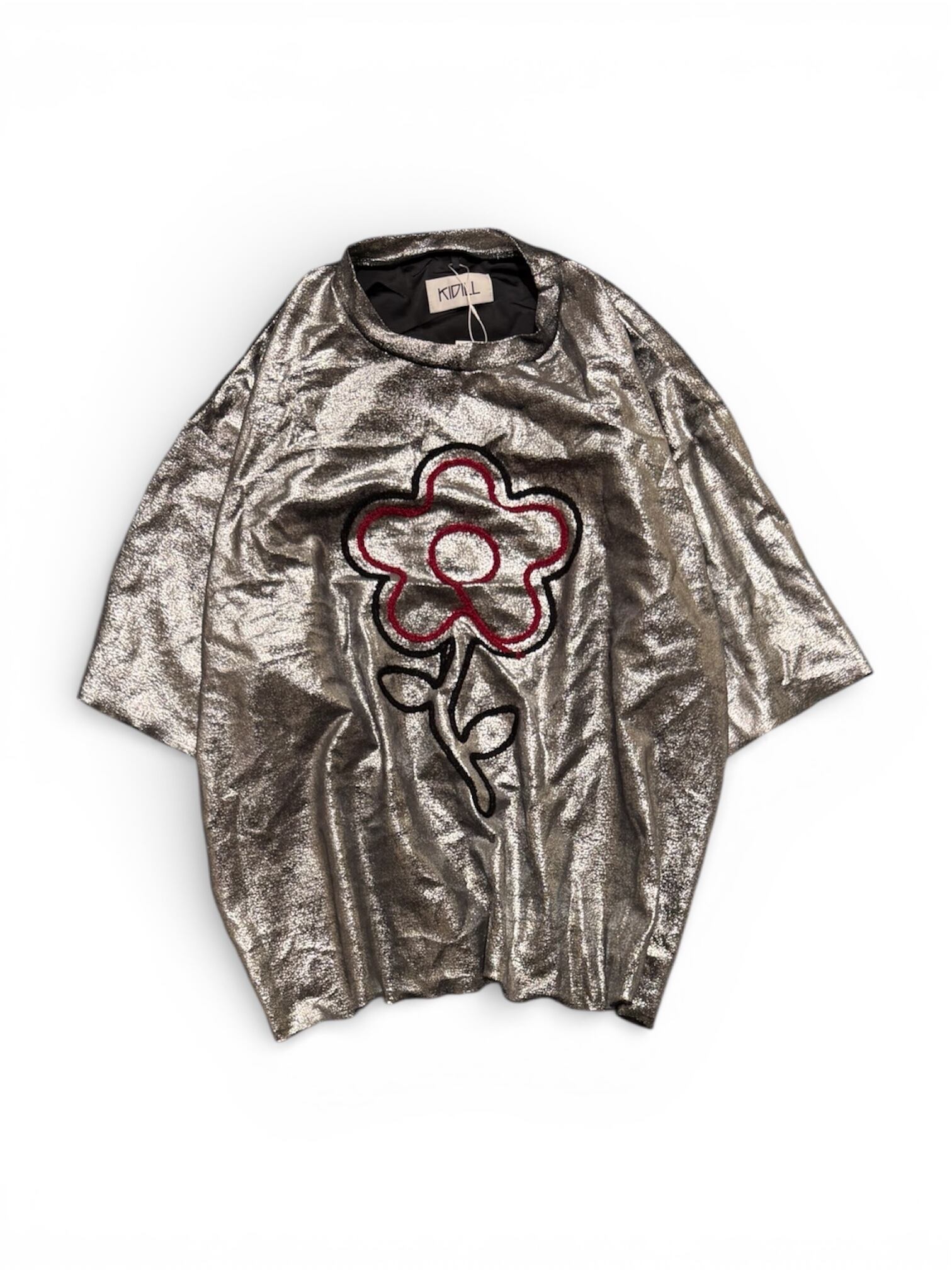 KIDILL/FLOWER CORD EMBROIDERY VEROUR TEE BIOSTONE WASHED