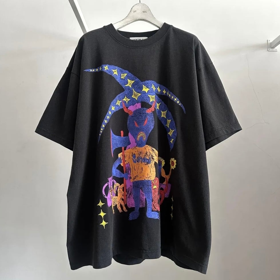 前後にグラフィックをプリントしたビッグTシャツ。