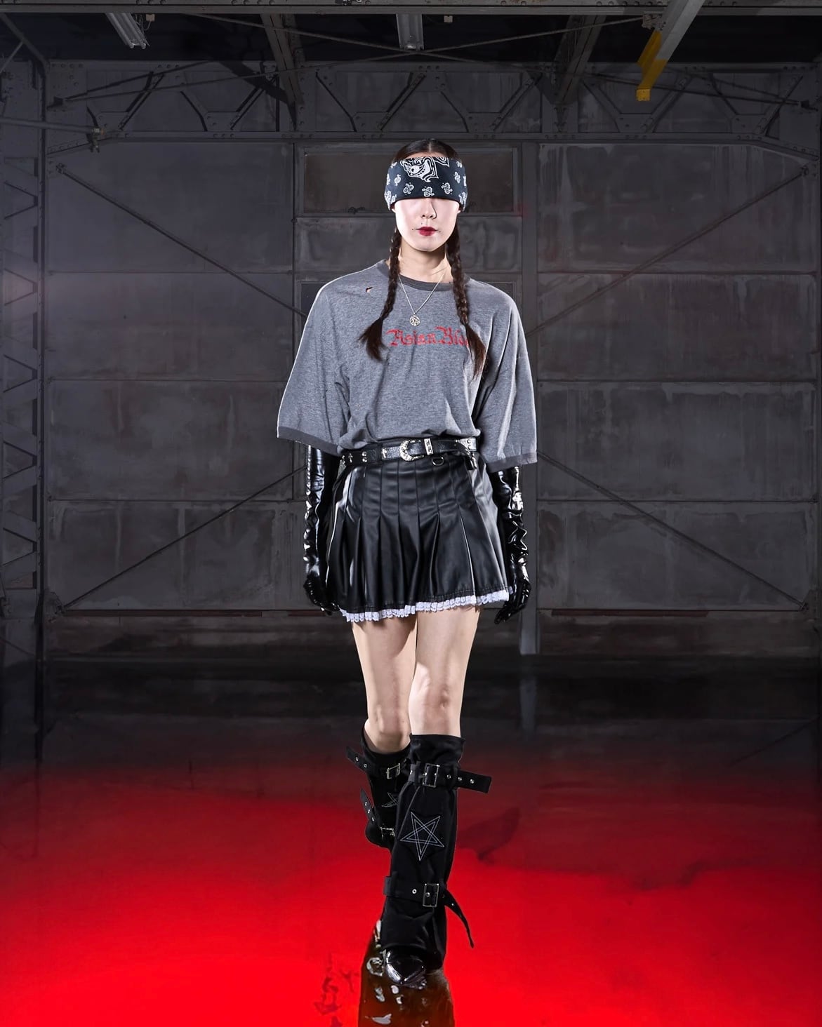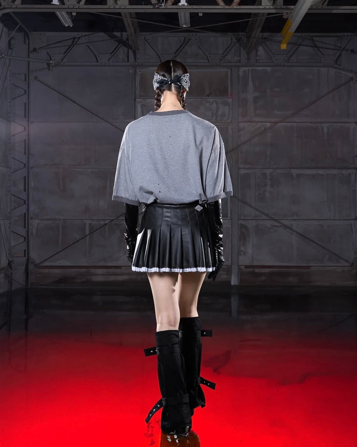el conductorH/vegan leather vace hem pleated mini skirt