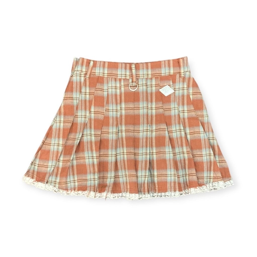 el conductorH/lace hem pleated check mini skirt